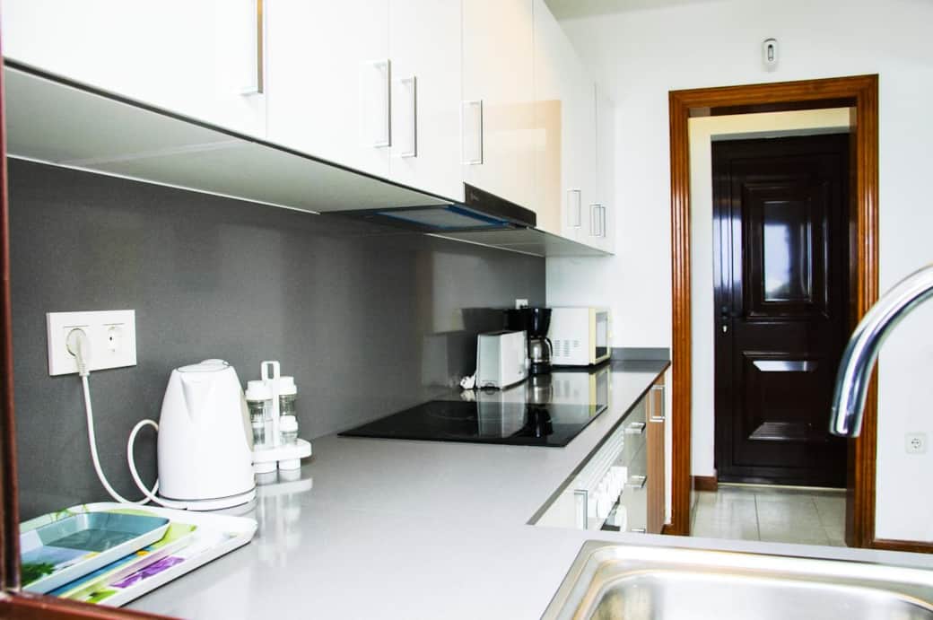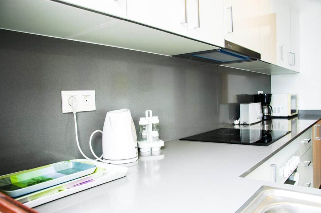 Children's high chair, Coffee machine, Cooking utensils, Dishwasher, Microwave, Oven, Refrigerator, Toaster